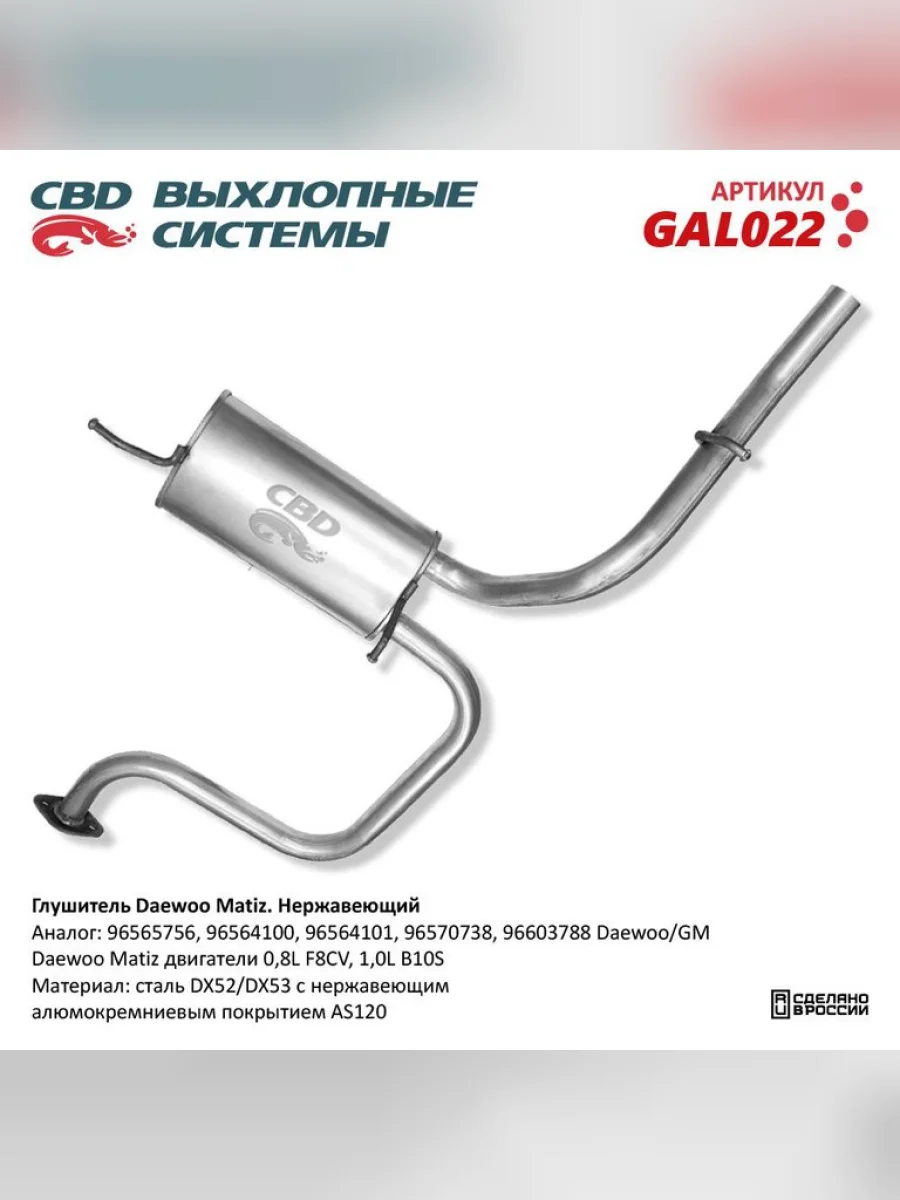 | Наименование | Глушитель DAEWOO Matiz задняя часть CBD в Димитровграде Ульяновской области |
