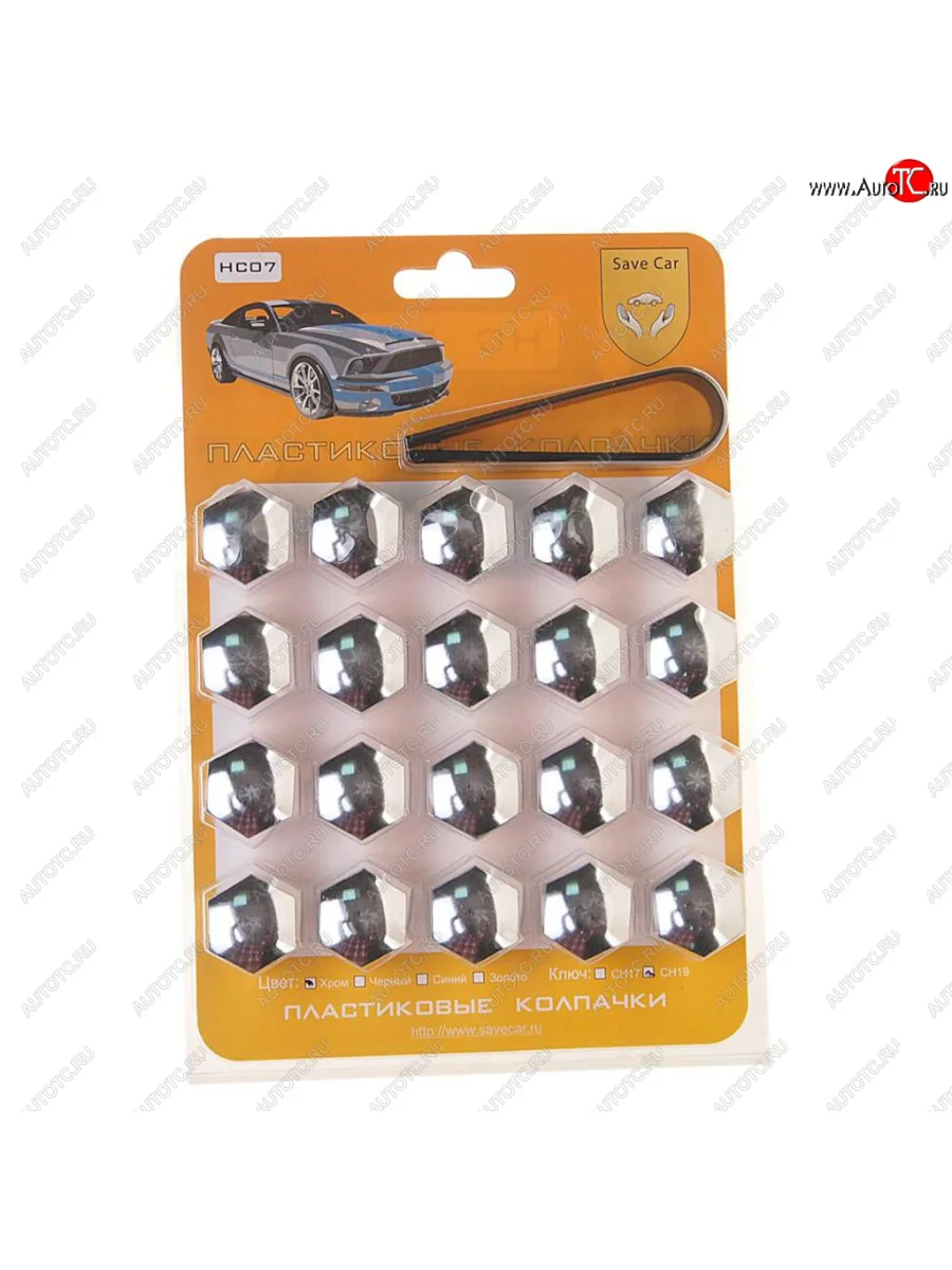 Колпачок для колесных болтов и гаек под ключ 19мм пластик хром 20шт. со съемником SAVE CAR SAVE CAR 301001 в Димитровграде Ульяновской области