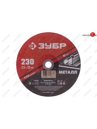 | Наименование | Круг отрезной по металлу 230х2.5х22.2мм ЗУБР ЗУБР 36300-230-2.5 в Димитровграде Ульяновской области |