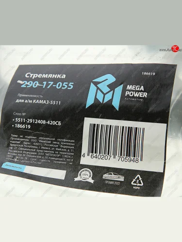 | Наименование | Стремянка КАМАЗ-5511 рессоры задней (10 тонн) L=420мм;М27х2мм усиленная в сборе MEGAPOWER MEGAPOWER 290-17-055 в Димитровграде Ульяновской области |